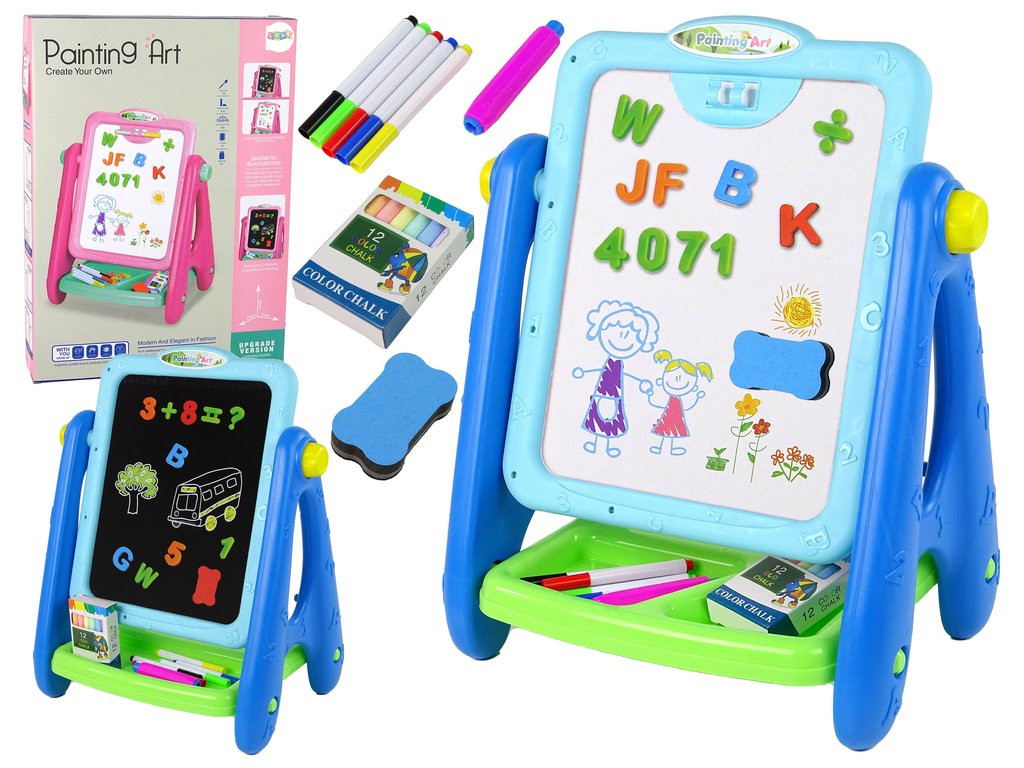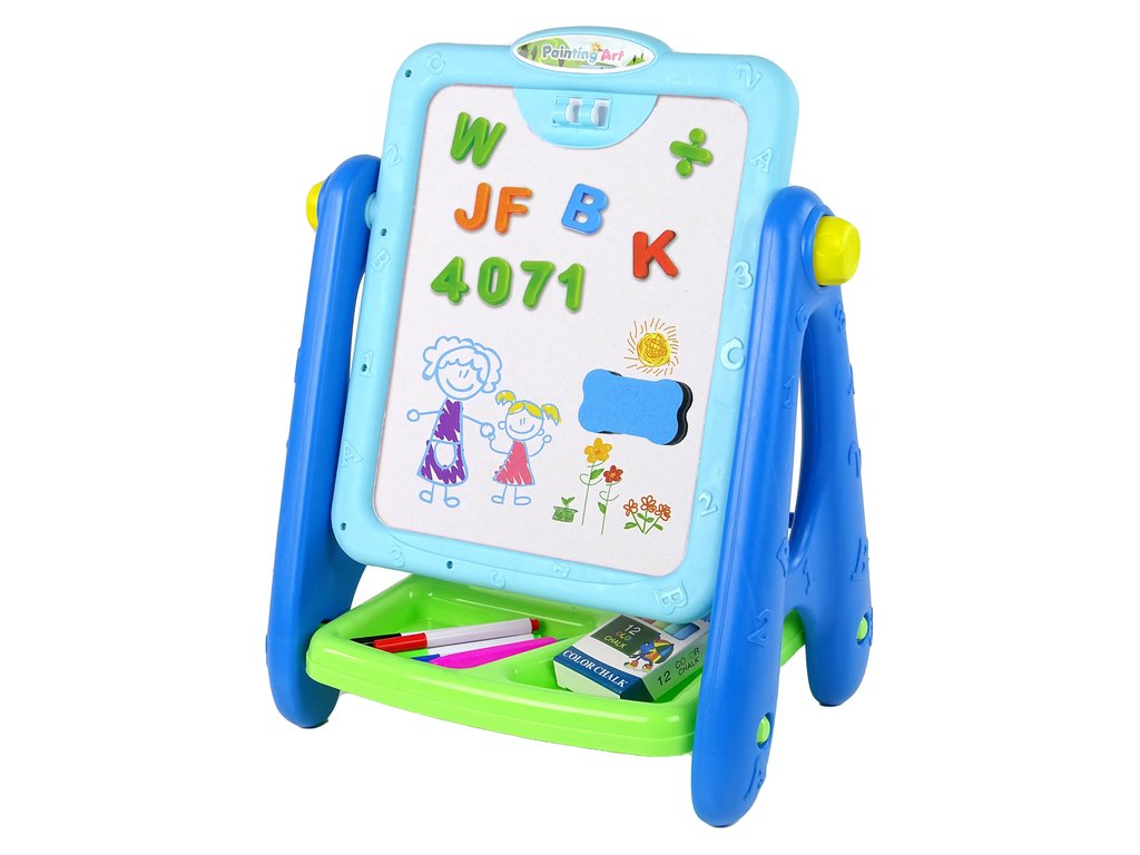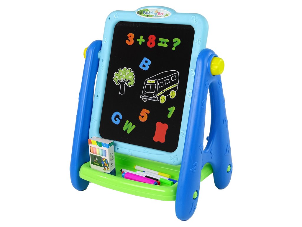 Образователна дъска 2в1 с тебешири и маркери синя