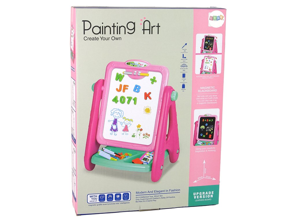 Представяме ви синята образователна дъска 2в1, която съчетава разнообразие в ученето и забавление! Тази многофункционална дъска има две страни: едната позволява писане с цветни маркери или закрепване на картички с магнитни щипки, а другата е магнитна дъска, върху която може да се пише с тебешир като на училищна дъска.