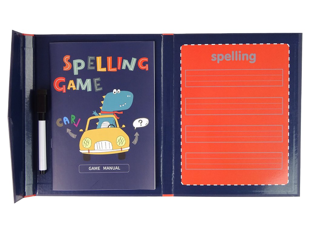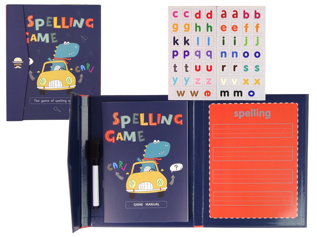Комплектът съдържа магнитни букви – цялата азбука. Вашето дете може да подрежда думи и да се научи да ги пише с помощта на специалния приложен маркер. Освен това малката книжка включва числа, цветове, плодове, превозни средства и зеленчуци. Картинките стимулират зрението и помагат за свързване на думите с образите. На обратната страна на всяка страница има отговори на английски език.