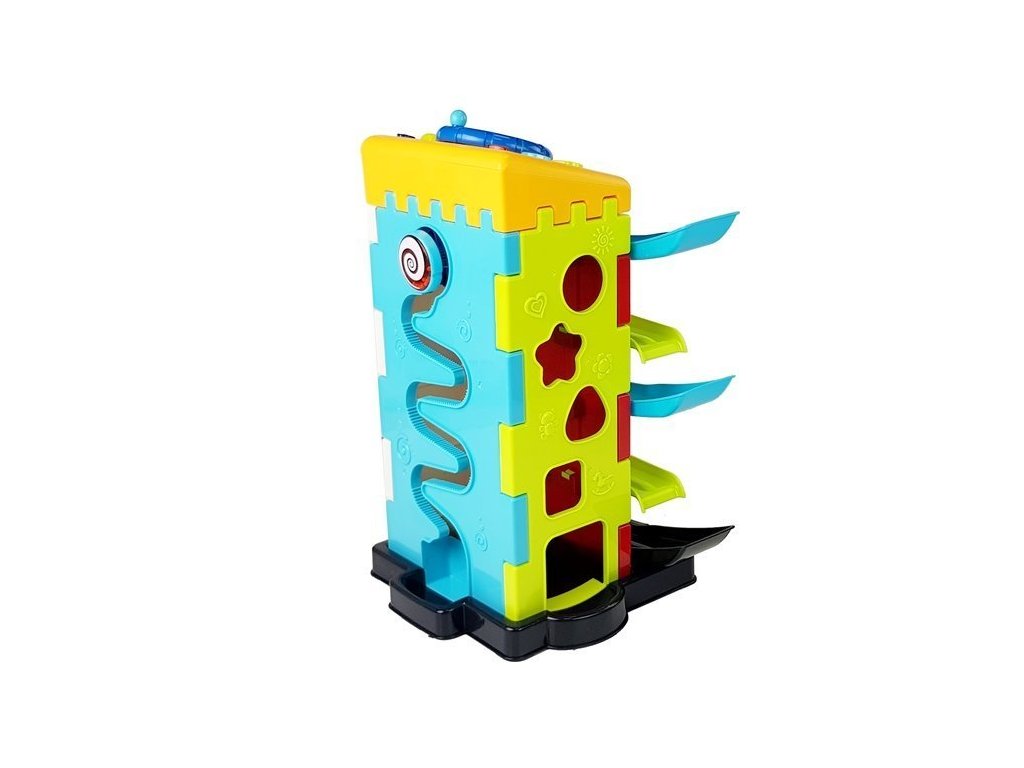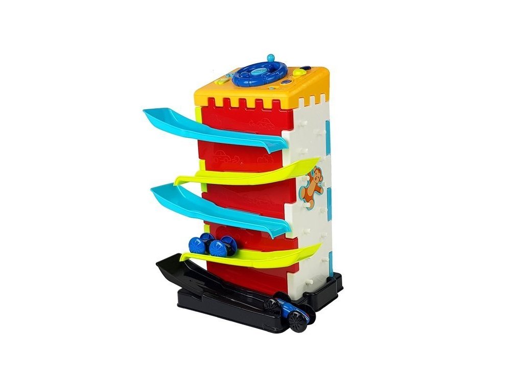 5. Игра с количка, която се пързаля по горната пързалка (в комплекта са включени 2 колички).