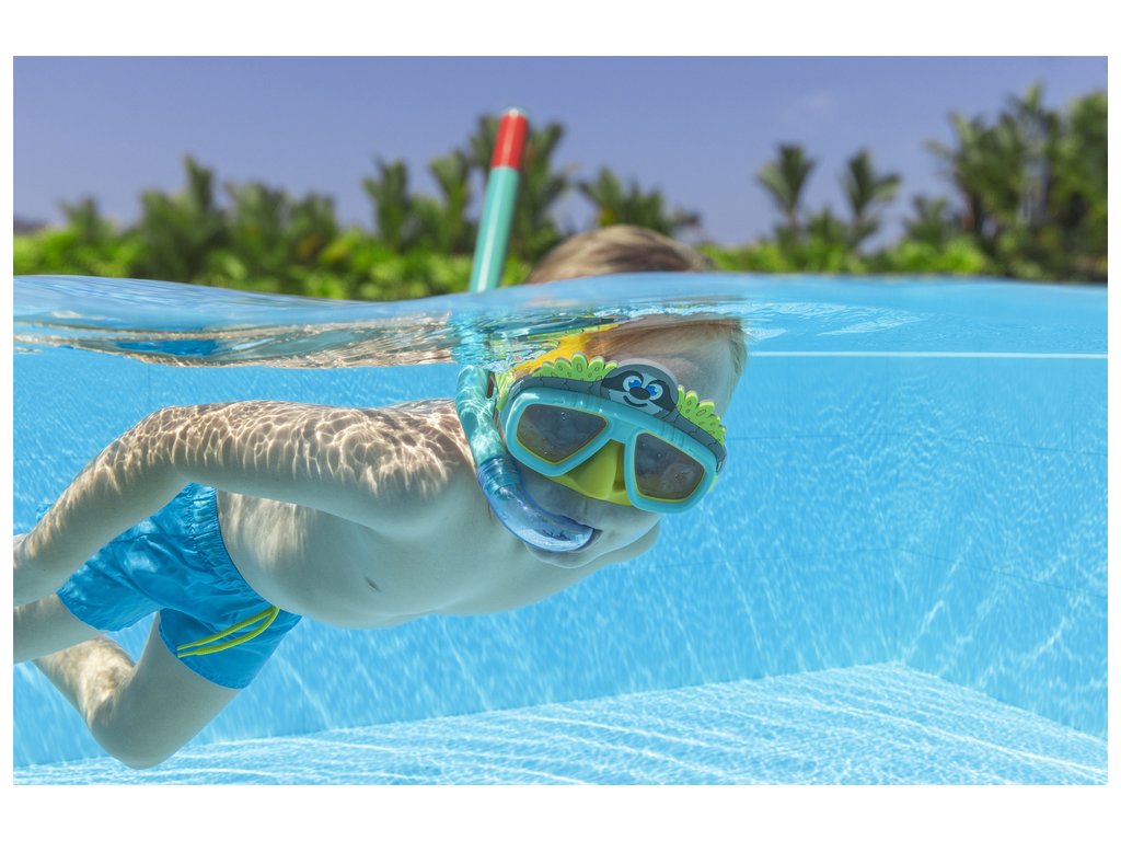 Този комплект впечатлява с невероятен комфорт при ползване. Лещите имат защитен UV слой, който ефективно предпазва очите на детето от слънчевите лъчи. Меката накрайник за уста и очилата осигуряват удобство, благодарение на което детето ще се наслаждава още повече на игрите във водата и на подводния свят. Комплектът е предназначен за деца над 3 години.