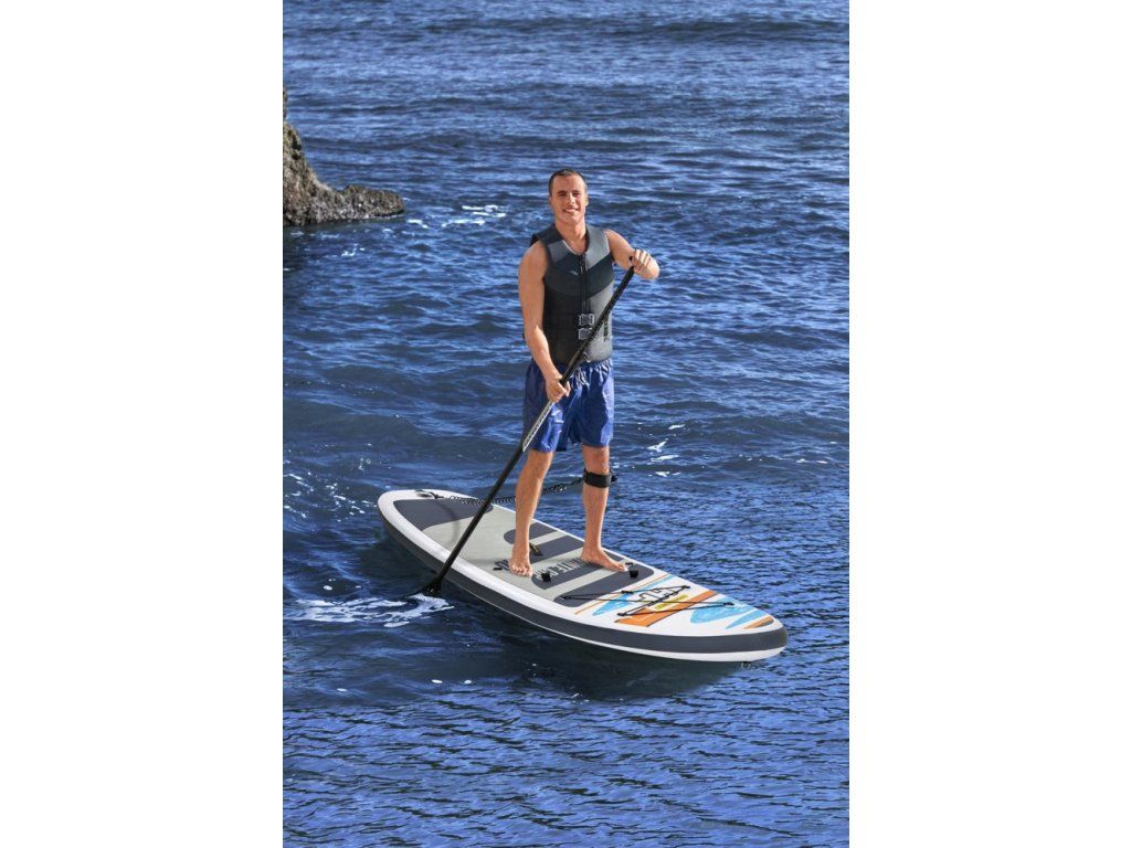 Лекото гребло, включено в комплекта, значително улеснява движението. Подвижният плавник повишава контролa и скоростта, позволявайки на потребителите да се почувстват като професионалисти на водата! След свалянето на плавника, получавате компактен и стилен продукт, който заема много малко място. Бордът е оборудван и с предпазен кабел, който ви гарантира, че никога няма да паднете от борда, както и с удобна транспортна чанта, която прави пренасянето на надуваемия борд много лесно.