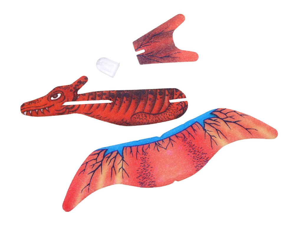 Съставен от 4 части, уникалният пенопластов самолет се превръща в завладяващ динозавър след сглобяване, готов за свободен полет. Децата могат да се наслаждават както на сглобяването, така и на гледането как творението им оживява във въздуха.