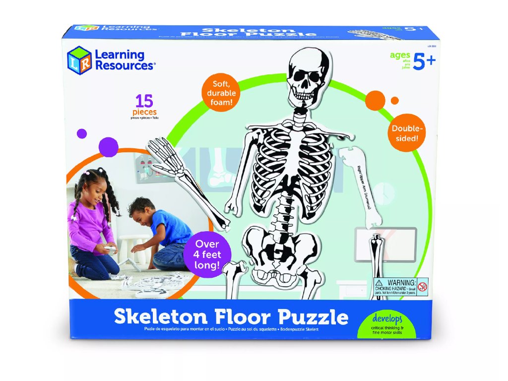 Пяна скелет в реален размер е подходящ инструмент за представяне на пропорциите на отделните части на човешкото тяло. Детето може да сглоби скелета на земята и да научи основните кости.