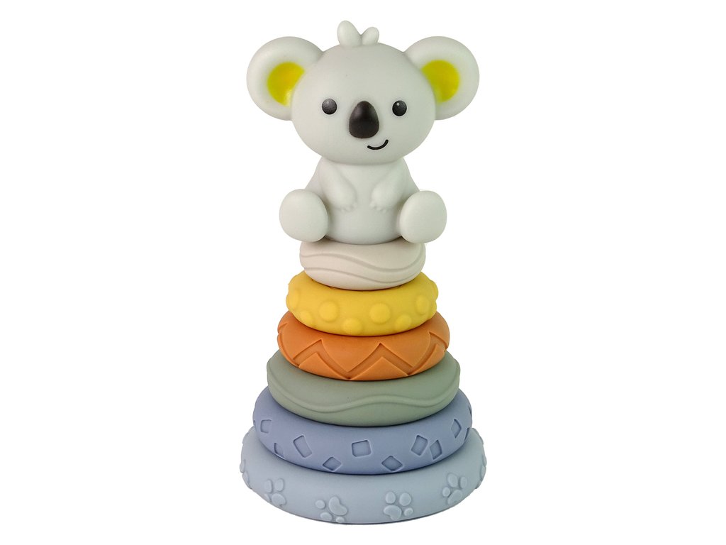 На върха на пирамидата има сладка коала, която насърчава интереса и играта. Децата с удоволствие ще пробват да въртят и подреждат дисковете в различни конфигурации, което развива тяхната моторика, координация ръка-око и логическо мислене.