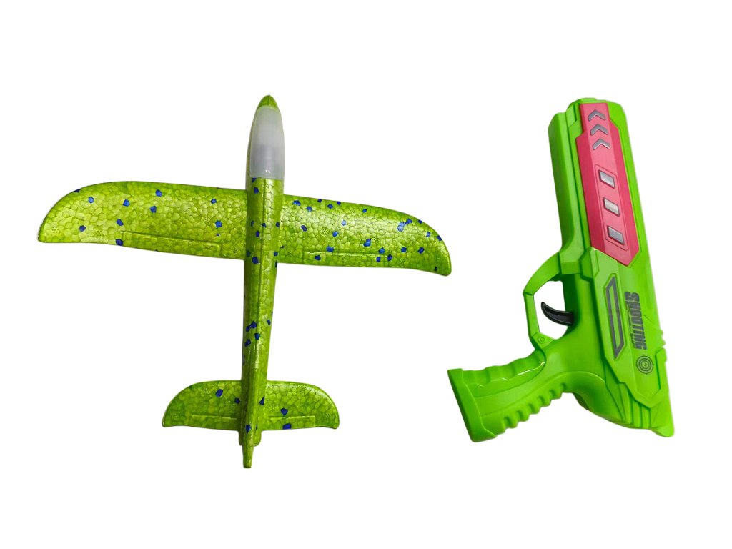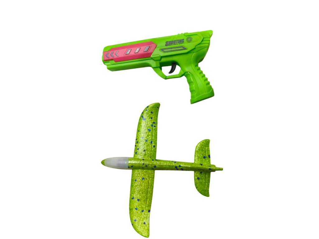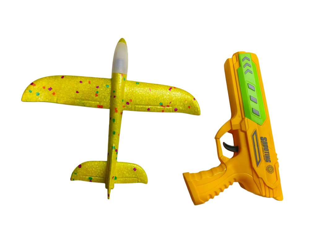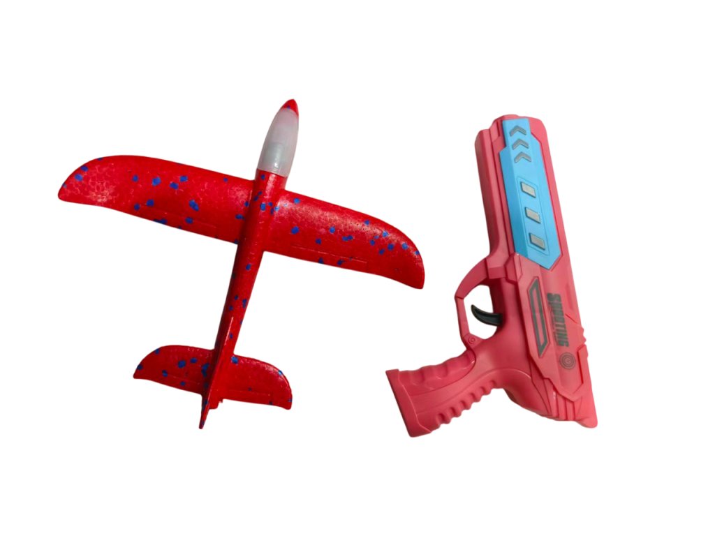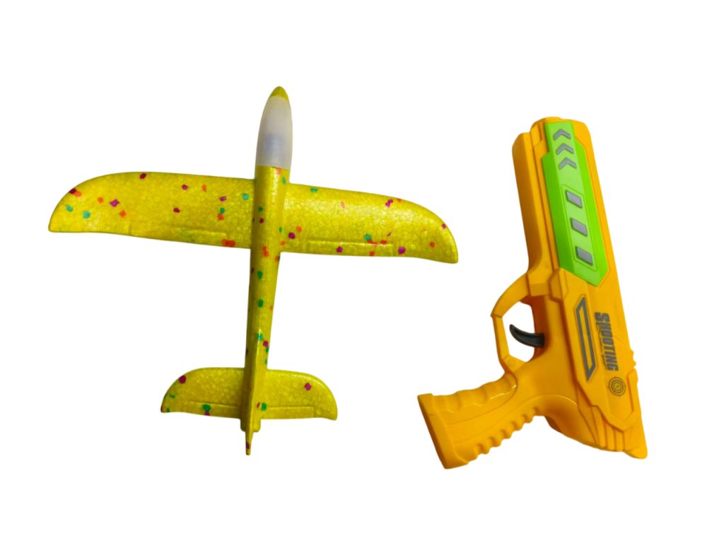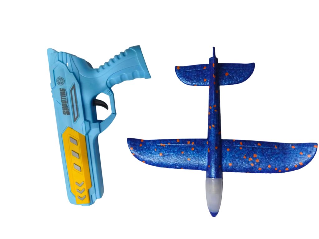 Изживейте страхотно забавление с оригиналния пистолет 2в1 и летящ планер! Просто поставете самолета от издръжлива EVA пяна върху пистолета, дръпнете и стреляйте – самолетът ще излети и ще се плъзне във въздуха. Благодарение на лекия материал, той е безопасен и устойчив на удари, така че ще издържи и на по-диви игри. Някои модели имат и цветна LED светлина, която ще добави още по-голям ефект към старта.