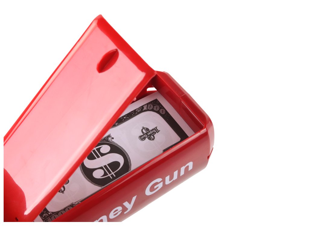 Пистолетът за хвърляне на банкноти е уникален джаджа. Креативният пистолет привлича вниманието със своя необикновен дизайн. Изработен от висококачествени материали, този пистолет за пари е забавен и атрактивен аксесоар.
