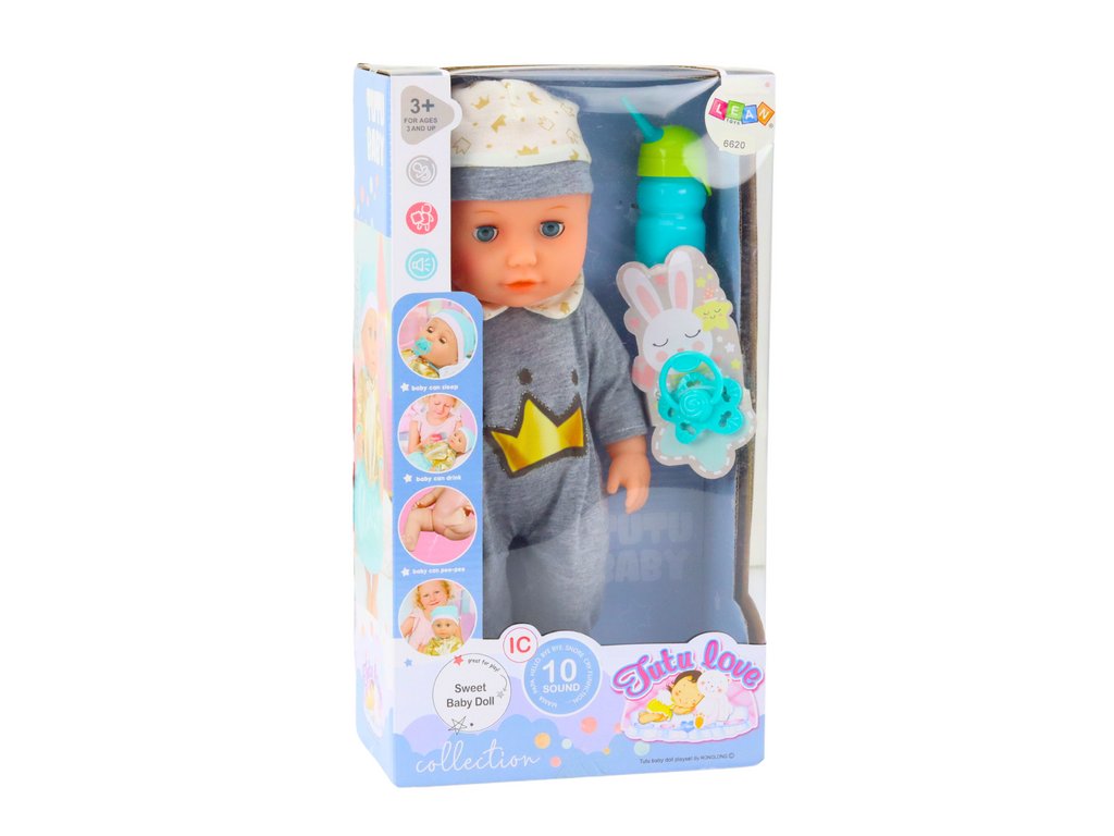 Когато детето я положи, очите ѝ се затварят автоматично, което имитира сън. Куклата може да "писка" след хранене с вода, което насърчава отговорност и грижа. С говорител на коремчето, който издава звуци имитиращи емоциите на бебе, тази кукла стимулира детското въображение и развива социални умения. Идеален избор за малки грижовници, които искат да се почувстват като истински родители.
