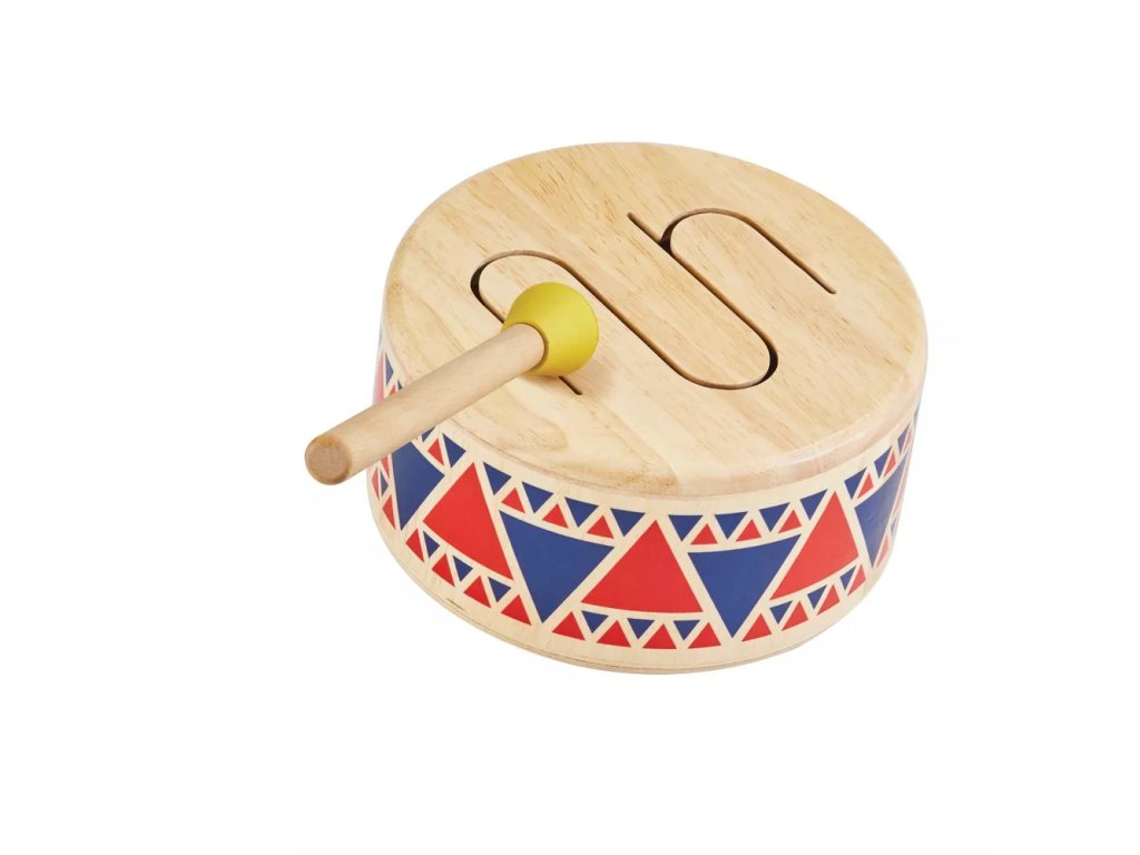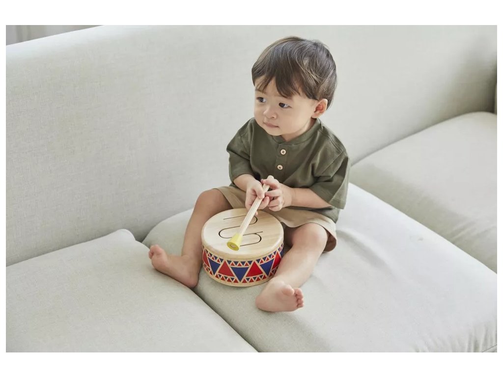 Барабанът е любим помощник на децата в предучилищна възраст. Чрез почукване на различни места по повърхността детето създава различни звуци, което позволява откриването на тонове и основите на ритъма. Главата на палката е от гумен материал за по-добър акустичен ефект и по-щадящ контакт с повърхността на барабана.