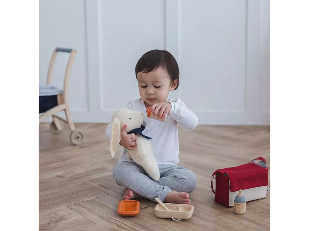 Комплектът за хранене на кукли насърчава развитието на емпатия и грижа за другите чрез игра на родители и други ролеви игри.