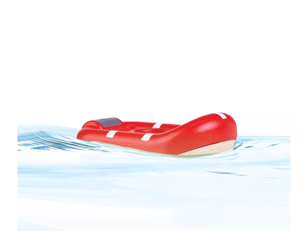 Плавайте по бързеите и се насладете на водни приключения с този дървен сал от PlanToys. Играчката плава по водата и насърчава интерактивната и въображаема игра, фината моторика и концентрацията на децата.