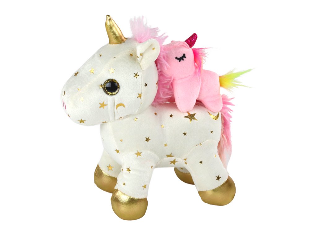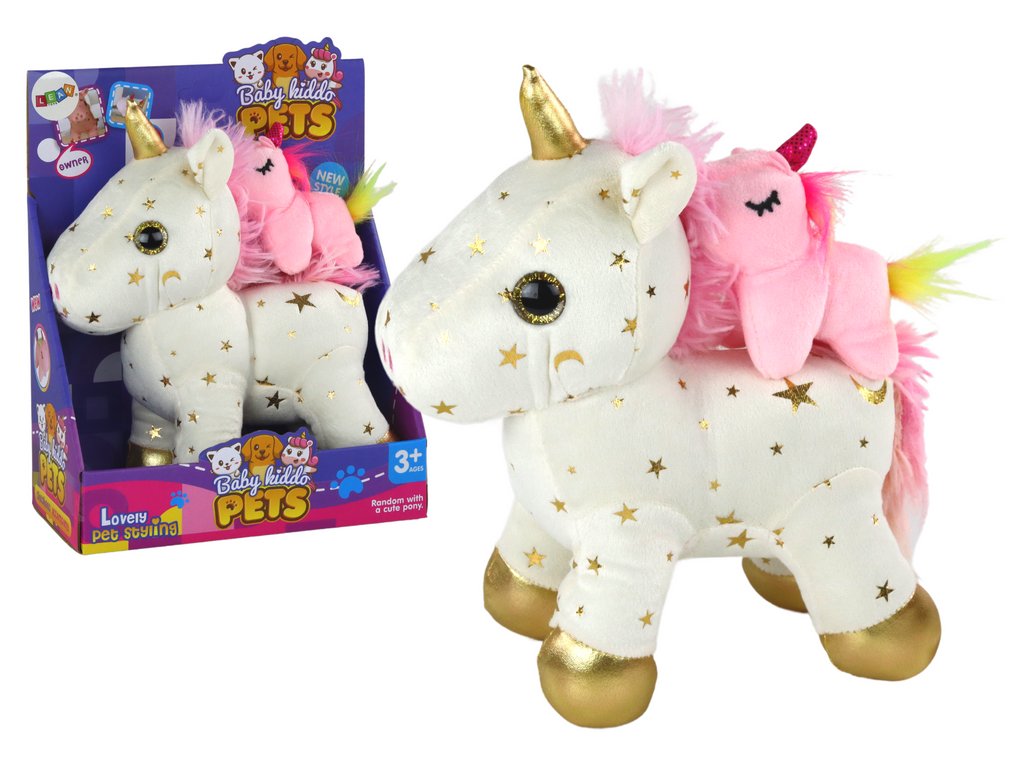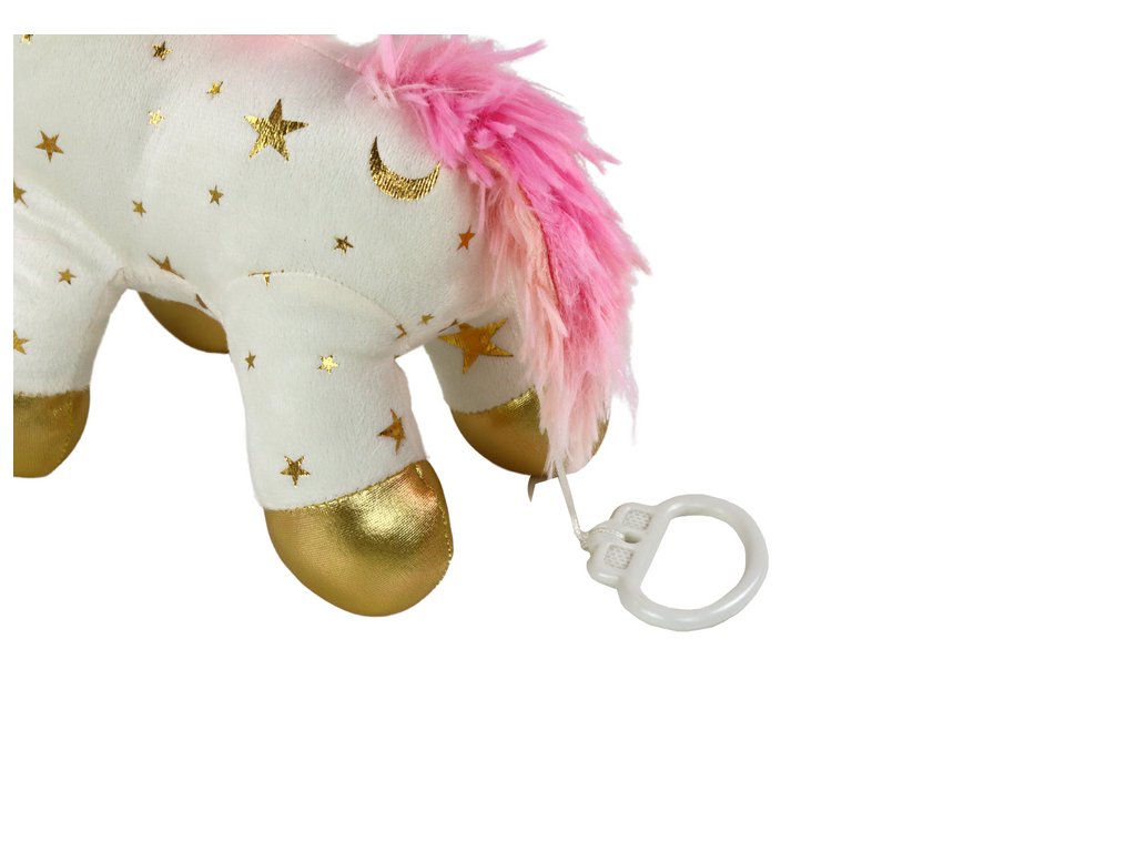 Очарователният плюшен еднорог за заспиване с бели звездички е незаменима играчка, която помага на вашето дете да се отпусне и заспи в магическа атмосфера. Този бял еднорог с розова грива и сребристи звездички е не само красива декорация за детската стая, но и практично средство, улесняващо заспиването.