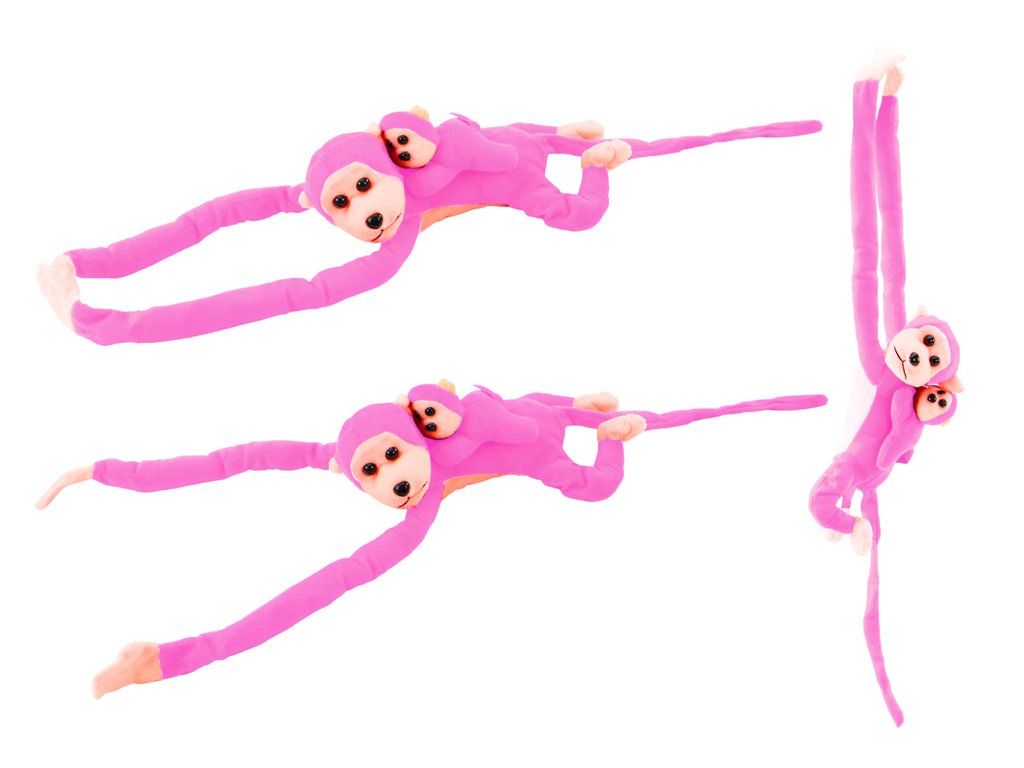 Плюшена маймунка с бебе 90 см розова