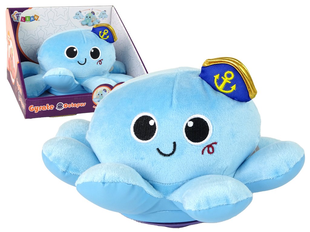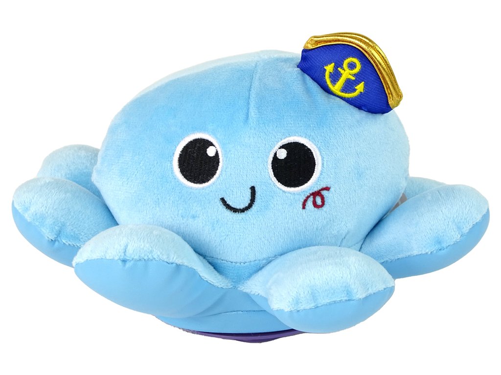 При включване плюшена октопод с ефекти синя започва да свири весели мелодии, танцува (завърта се и се движи) и свети с цветове. Това е особено впечатляващо през нощта, когато светлинните ефекти създават красива атмосфера.Играчката се движи благодарение на колелца, което добавя интерактивност и стимулира децата към активна игра.
