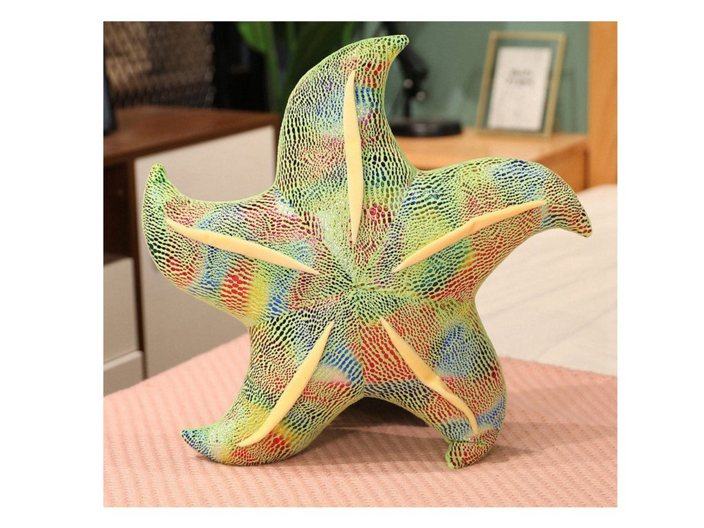 Плюшена възглавница морска звезда 45 см зелена е вълшебна възглавничка, която носи уют и радост във всеки дом. Нейната мекота и сладък вид я правят перфектен спътник за моменти на почивка, гушкане или декорация в детската стая. Тази морска звезда не е просто играчка, а и мек приятел, който ще зарадва във всяка ситуация.