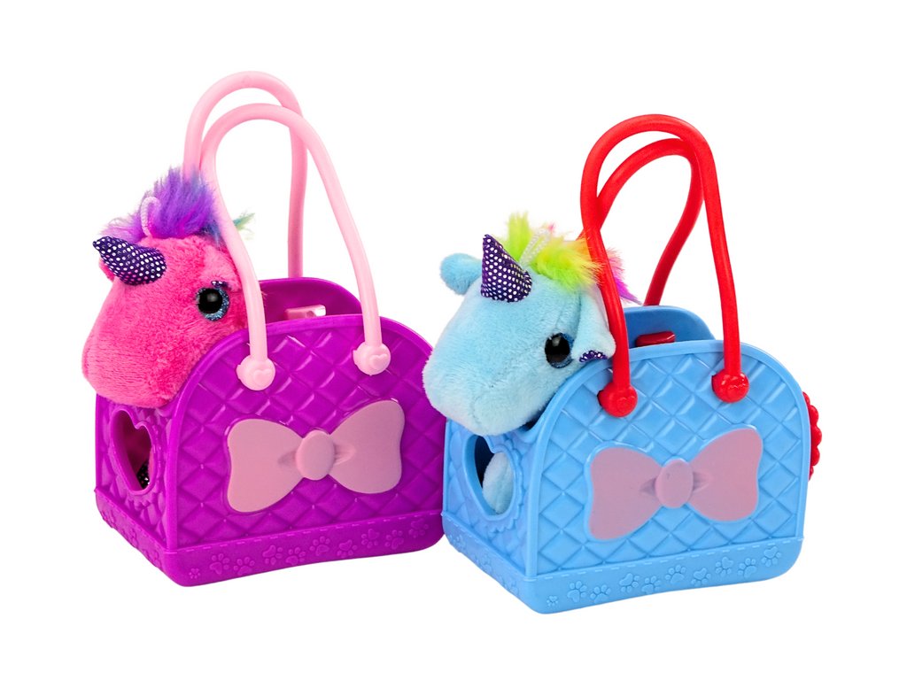 Чантата, в която се намира еднорогчето, е изработена от здрав и издръжлив гумен материал. Тя не е само стилна, но и много практична. Благодарение на нея детето ви може лесно да пренася любимата си плюшена играчка и да я носи навсякъде – на разходки, в детската градина или на гости при приятели.