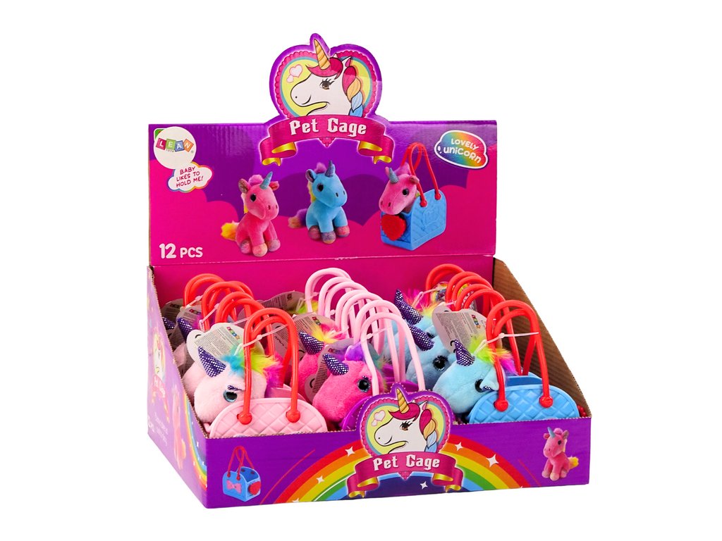 Плюшено еднорогче с цветна грива в гумена чанта 3 вида