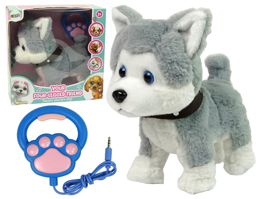 Плюшено кученце Хъски интерактивно образователно с каишка и песнички, което ходи