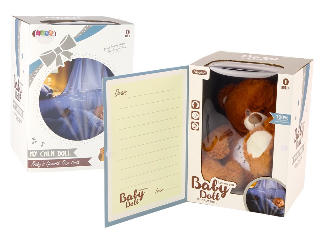 Плюшено мече с приспивателни светлини, звуци, нощен и дневен режим, кафяво