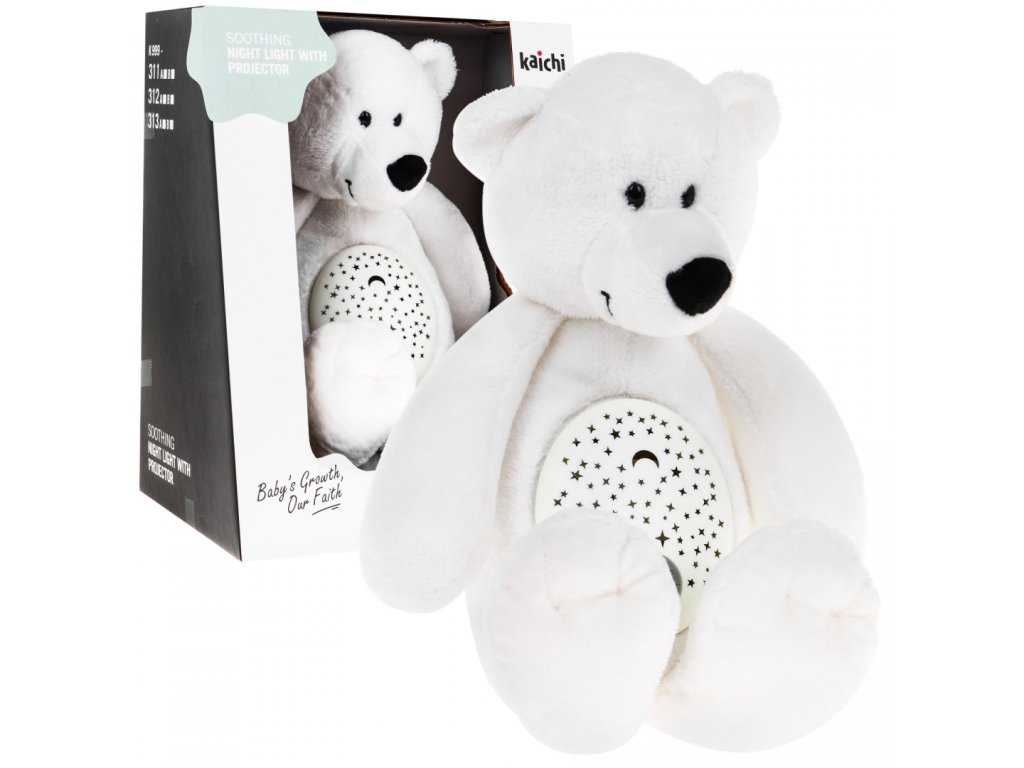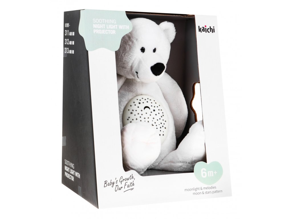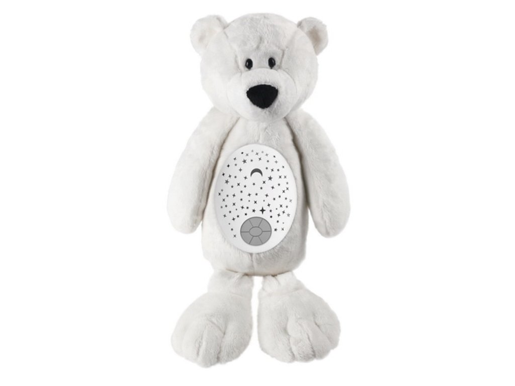 Меко и приятно на допир плюшено мече с проектор в коремчето е отличен помощник за приспиване. Плюшеното мече е изработено от материал, безопасен за бебета.
