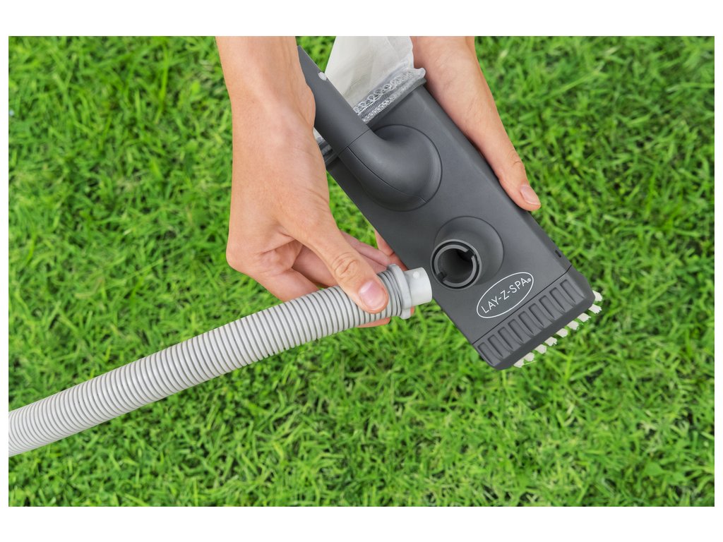Градинското джакузи изисква редовно и старателно почистване. С времето на дъното се натрупват различни замърсявания. За да предотвратите това, снабдете се с подводен почистващ уред за Spa Jacuzzi, който значително улеснява поддържането на чистота на дъното и водата. Уредът е лесен за употреба, свързва се към помпата и изходите на водата и функционира само с помощта на водния поток. Лекият телескопичен стик опростява манипулацията вътре в джакузито.