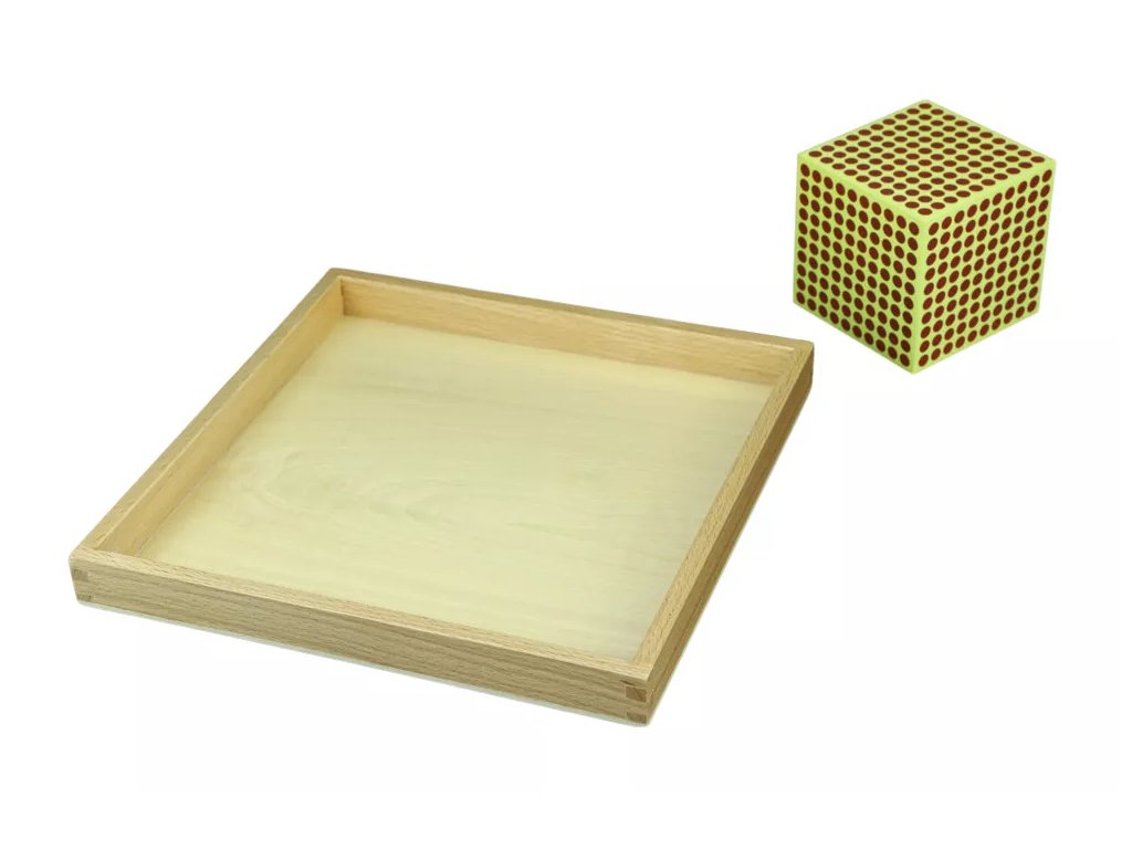 Подложка за девет дървени кубчета, изобразяващи 1000