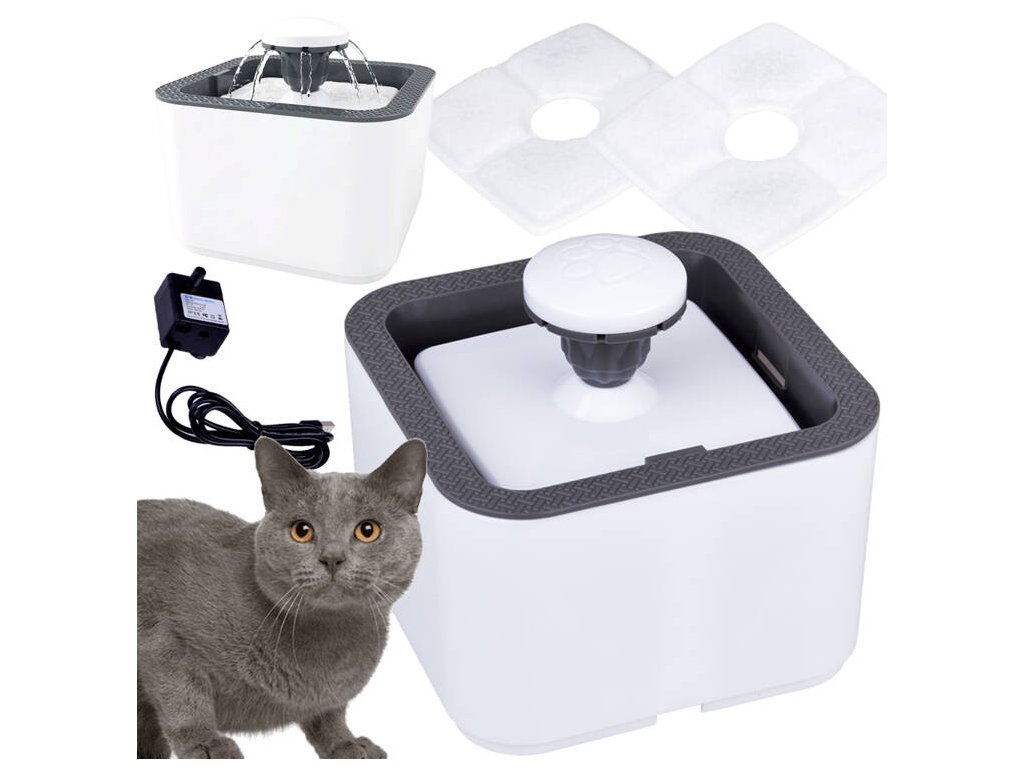 Поилка за котки и кучета с автоматична помпа е незаменим аксесоар за стопаните на домашни любимци, които се грижат за здравето и комфорта на своите животинки. Благодарение на големия си капацитет от 2,5 литра, идеален за различни видове домашни любимци, поилката осигурява непрекъснат достъп до прясна вода за вашия любимец.