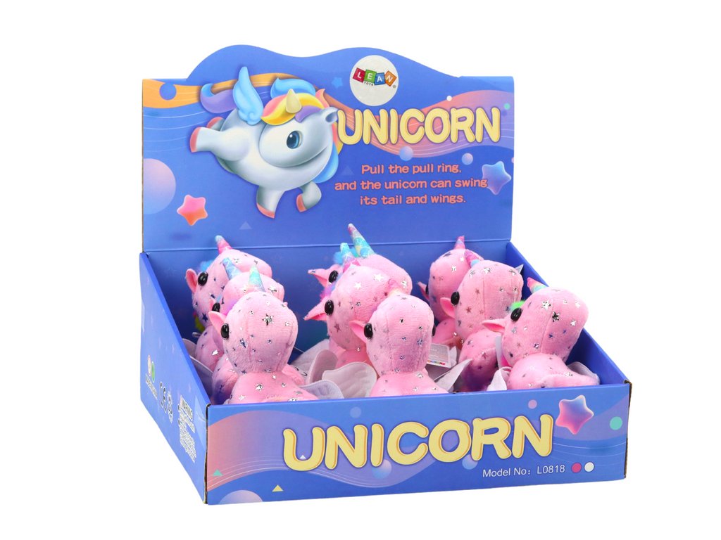 Припомняйки истински кон от приказното царство, нашият плюшен еднорог има очарователни бели крилца, които го правят още по-магичен и фантастичен. Но това не е всичко! Благодарение на поставената въженце за дърпане, еднорогът започва радостно да скача и да върти опашката си, превръщайки играта в още по-вълнуващо и усмихнато преживяване.
