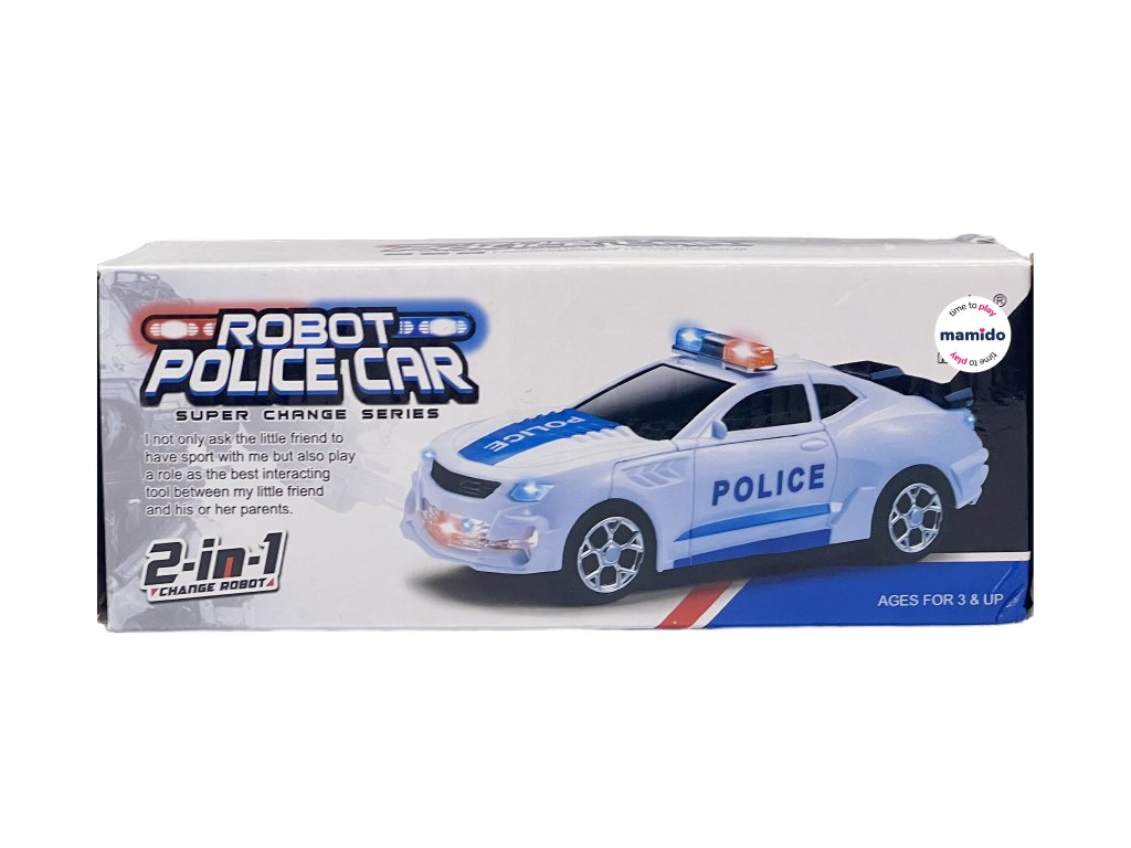 Перфектният избор за всяко момче, което ще се забавлява с две играчки в една. Можете да играете както със супер робот, така и с полицейска кола. С играчката можем да се движим във всяка посока и с помощта на два бутона да променим формата ѝ от супер кола на мощен робот, познат на децата от приказки и филми.