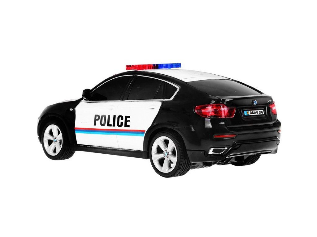Полицейска кола с дистанционно управление R/C BMW X6 1:24 е лицензиран продукт на компанията BMW. Полицейската кола BMW X6 е изработена в мащаб 1:24 и разполага с напълно функционално дистанционно управление, което работи на честота 27MHz. Колата се движи напред, назад и завива наляво и надясно. По време на движение предните и задните светлини светят. Моделът има гумени гуми и задвижване на задните колела.