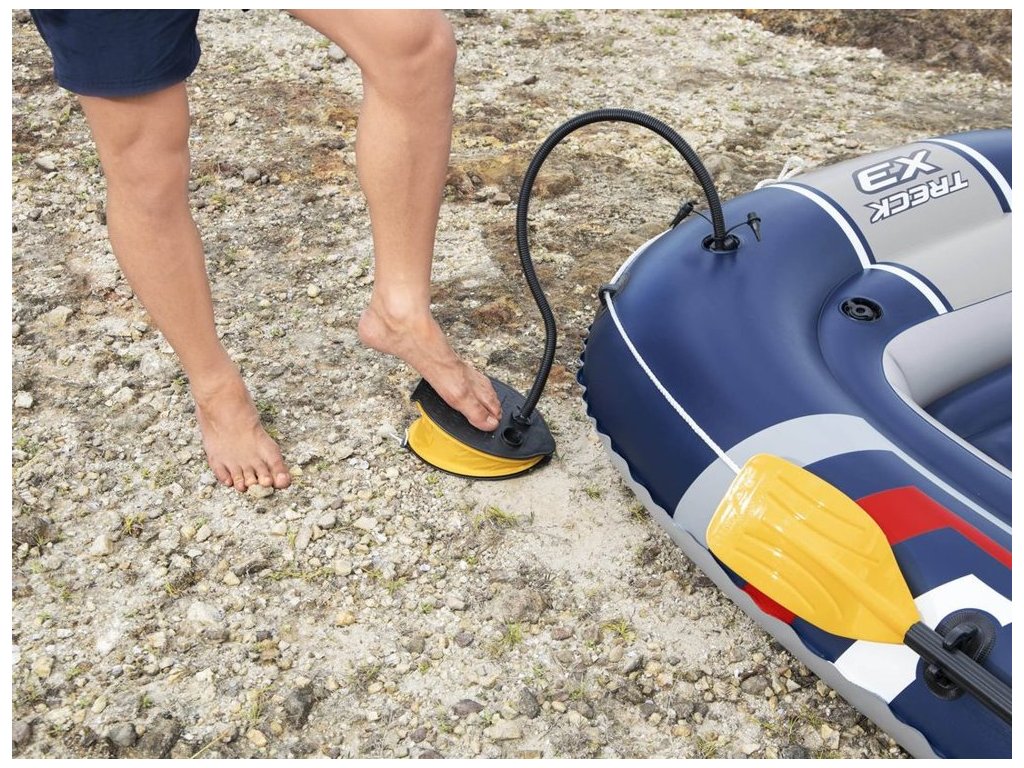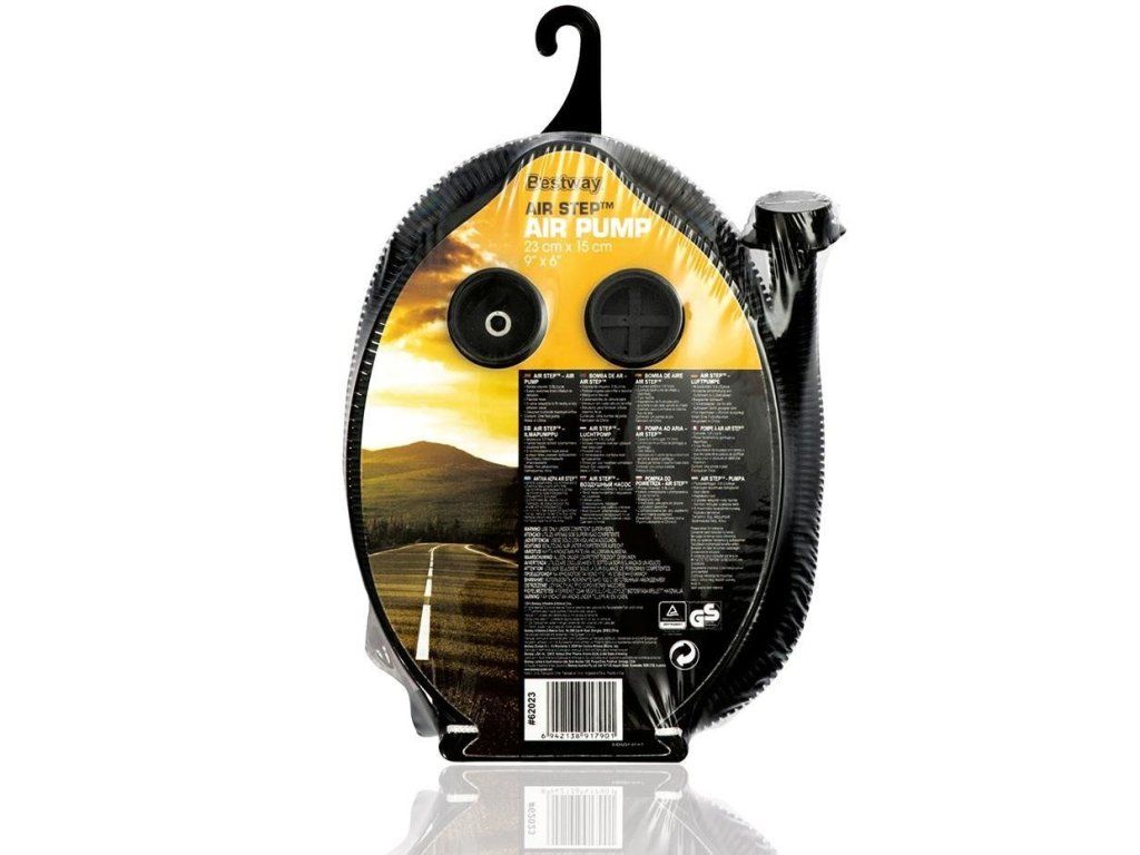Помпa за крак с размери 23 x 15 см. Ако искате бързо да надуете матрак, плувен пояс или плажен топка, определено ще имате нужда от тази помпа. Благодарение на сменяемия накрайник, тя е идеална за всички видове надуваеми изделия. Помпата е подходяща както за надуване, така и за изпускане на въздуха. Поради компактния си размер, е перфектна за носене на басейн или на плажа.