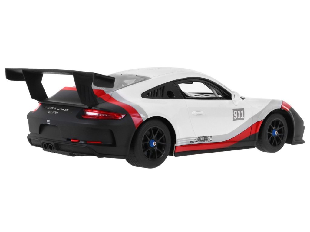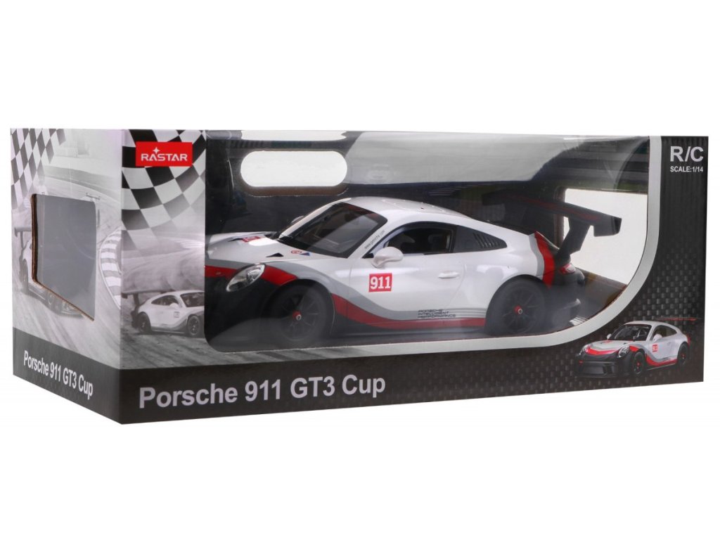 Перфектно проектираният Porsche 911 GT3 CUP с дистанционно управление е модел от серия образователни играчки с батерии, специално предназначени за деца и възрастни, които обичат приключения с радиоуправляеми коли. Porsche е изключително маневрен, динамичен и при движение напред светлините му светят, а при движение назад светват задните фарове (вградени са изключително ярки LED диоди). Има гумени колела, имитиращи истински гуми. Удобното дистанционно управление осигурява движение напред и назад, както и завиване вдясно и вляво. В долната част на автомобила има бутон за включване и изключване. Porsche е изработен от висококачествена пластмаса и отлични електронни компоненти. Моделът точно пресъздава детайлите на истинската кола. Играчката е подходяща за деца над 6 години и има сертификат CE.