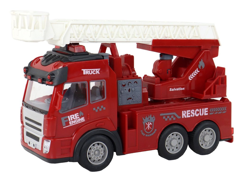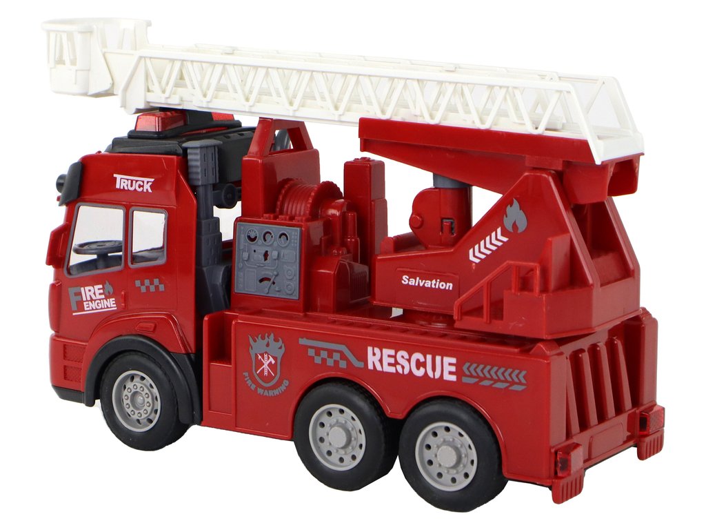 Представяме ви пожарна кола с дистанционно управление R/C червена с регулируема стълба. Стълбата може да се вдига на различни височини и да се накланя. Освен това, тя може да бъде напълно отделена от автомобила, което увеличава възможностите за игра и творческо развитие. Колата е оборудвана с впечатляващи светлинни и звукови ефекти. Мигащи светлини и реалистични звуци на сирени създават атмосферата на вълнуваща спасителна операция, като децата се чувстват като истински герои. Пожарната кола разполага с гумирани колела за отлично сцепление и стабилност при движение по различни повърхности. В комплекта е включено дистанционно управление, чрез което колата може да се управлява лесно и прецизно.