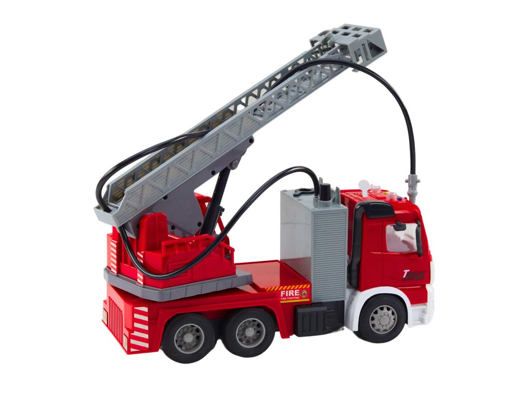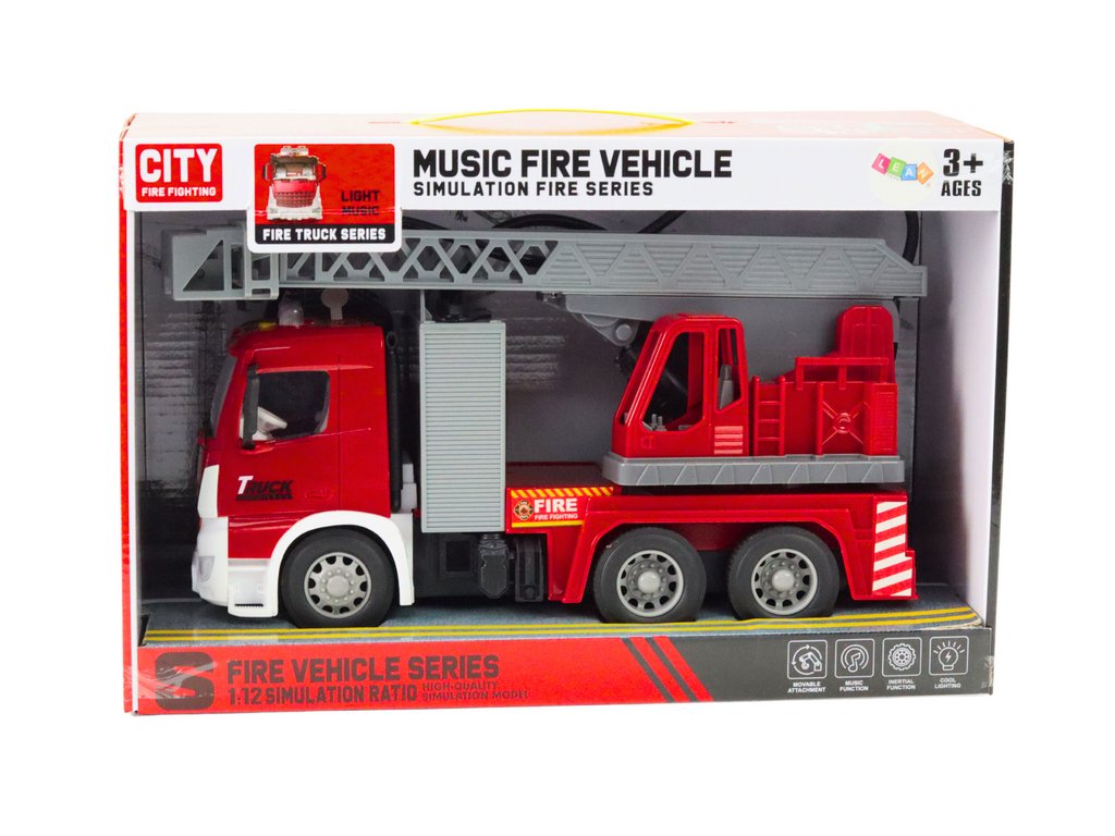 Отправете се на спасителна мисия с Пожарна кола с фрикционно задвижване и изтегляща се стълба. Този здрав и издръжлив модел с регулируема стълба и функционален пожарникарски маркуч е готов за всяко предизвикателство. Светлинни и звукови ефекти придават динамика и реалистично преживяване на играта. Фрикционно задвижване и гумирани колела осигуряват плавно движение, а детайлната изработка вдъхновява въображението на малките герои.