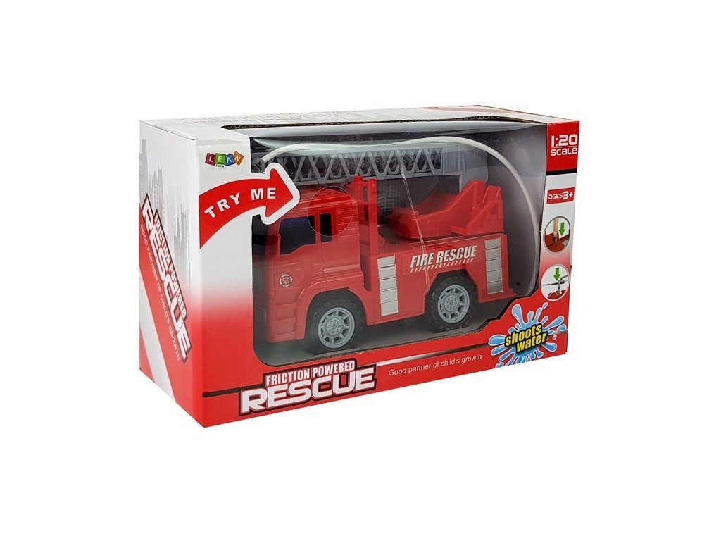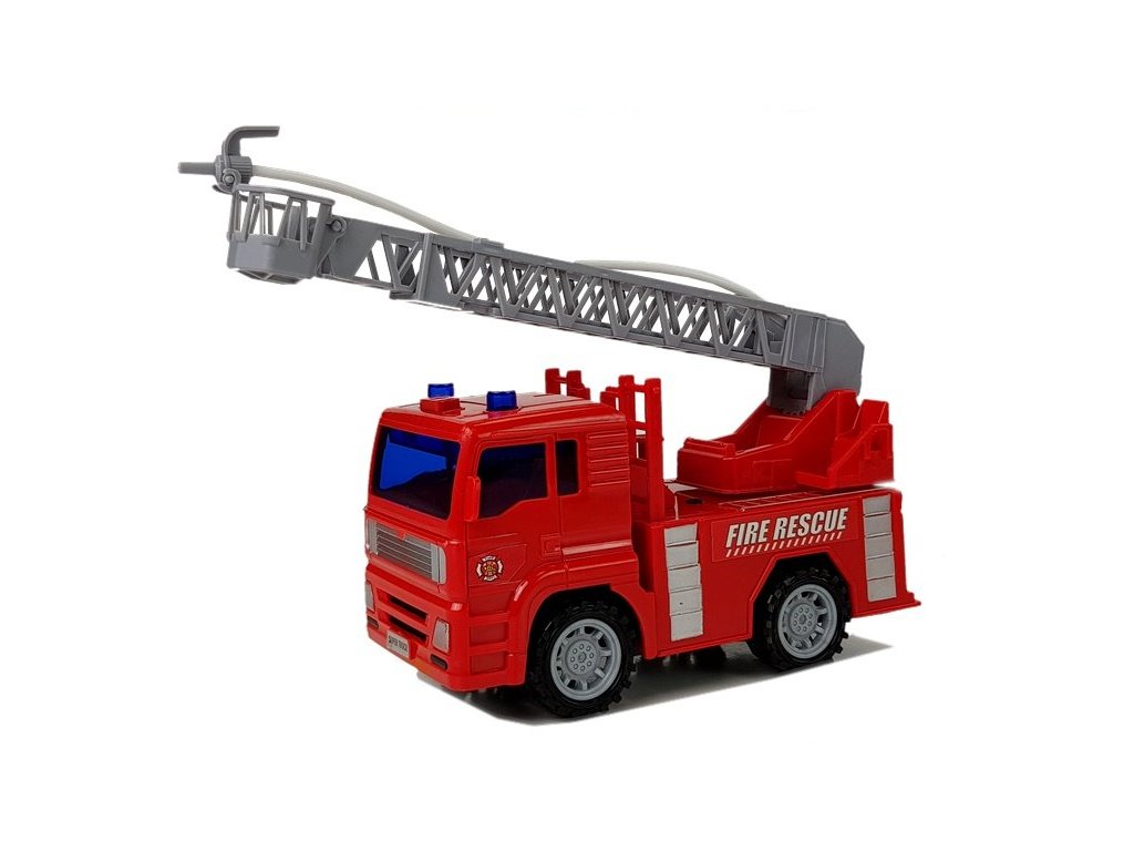 Уникална пожарна кола с помпа в мащаб 1:20 с водна помпа. Превозното средство има вътрешен резервоар, който може да се напълни с вода. При натискане на бутон, разположен отгоре, помпата започва да работи.