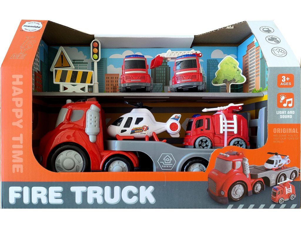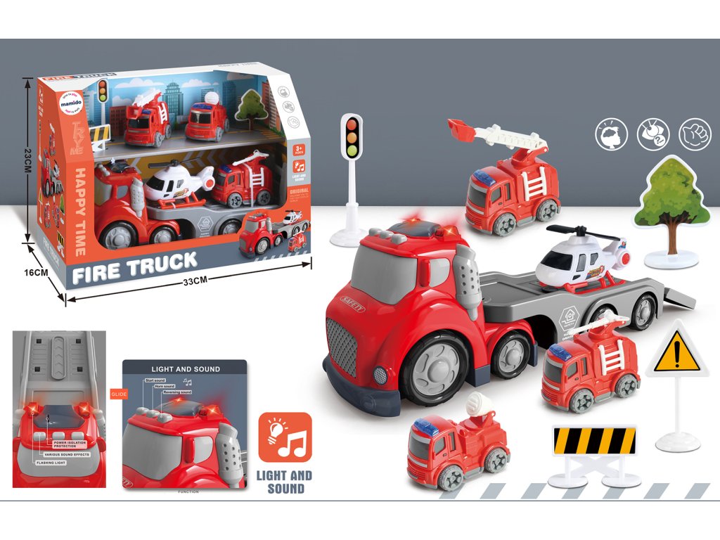 Пожарна кола с ремарке за най-малките със светлини и звуци Fire Truck Transport