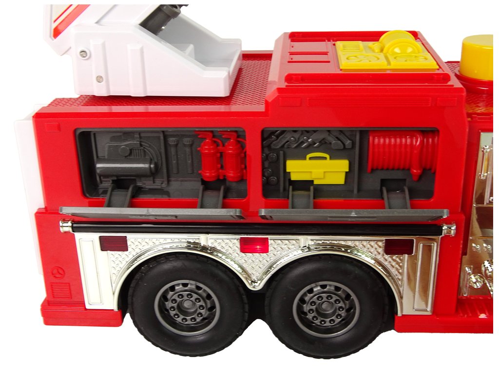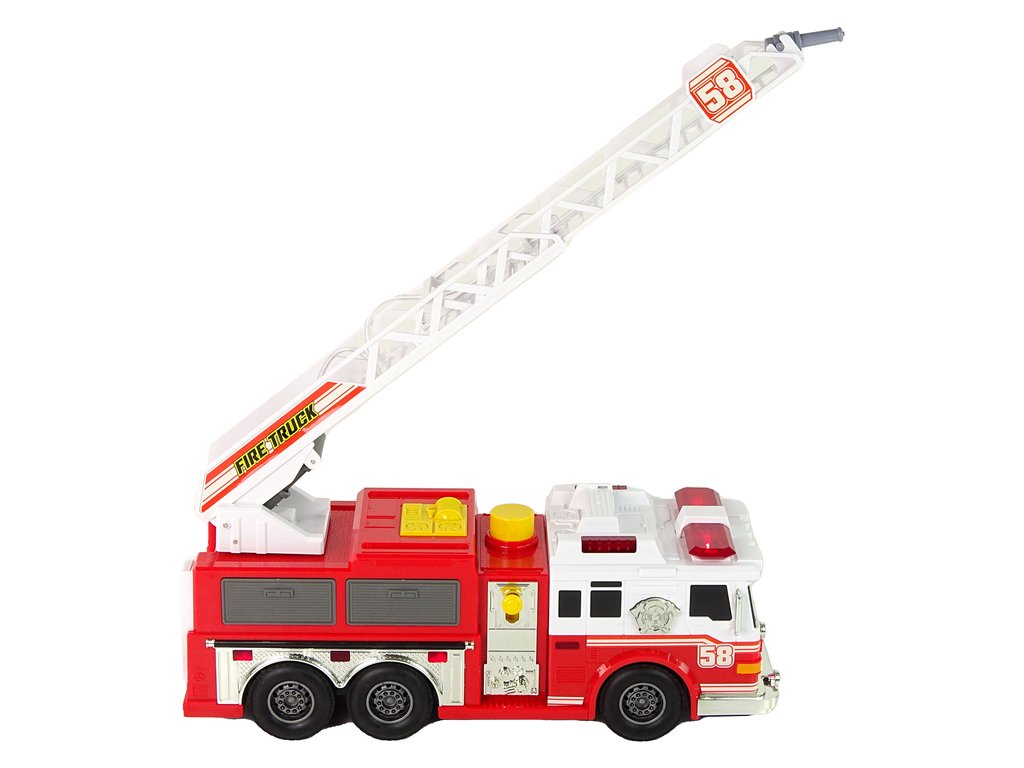 Най-важният елемент на количката е голямата стълба, която може да се върти и изтегля. Това е интерактивна функция, която дава на децата възможност да симулират спасителни операции и да достигат труднодостъпни места. За да бъде играта още по-реалистична, играчката разполага с водна струя. При натискане на големия жълт бутон може да я активирате, което позволява да играете ролята на пожарникар, гасещ пожар.