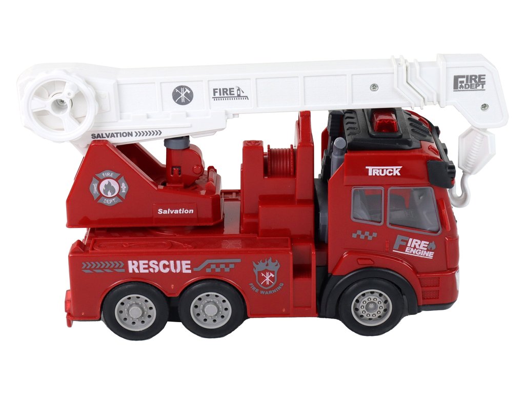 Представяме ви пожарникарска кола с кран с дистанционно управление R/C червена. Куката може да се вдига на различни височини и да се накланя. Освен това може да се отдели напълно от автомобила, което разширява възможностите за игра и творчество. Колата е оборудвана с впечатляващи светлинни и звукови ефекти. Мигащи светлини и реалистични звуци на сирени създават атмосфера на вълнуваща спасителна мисия и децата ще се почувстват като истински герои. Пожарникарската кола има гумирани колела за отлична сцепляемост и стабилност при движение върху различни повърхности. В комплекта е включено дистанционно управление, с което колата се управлява лесно и прецизно.