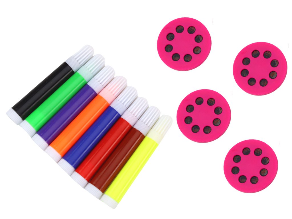 Комплектът включва до 32 различни възможности за избор, така че всяка минута прекарана с този проектор е ново приключение в художествения свят. Освен това, 8 цветни флумастера позволяват пълна изява и персонализиране на всяка творба. Тетрадката с листове е идеалното място за записване на идеи и създаване на собствени произведения на изкуството.