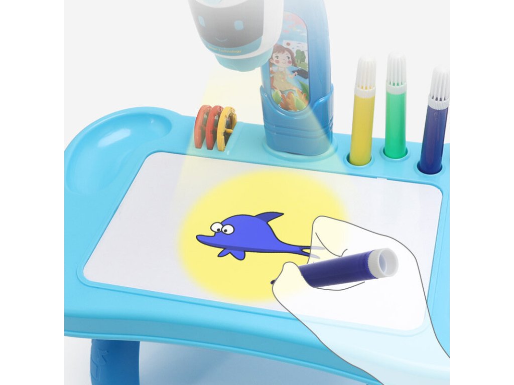 Проектор за рисуване с аксесоари синьо е чудесна интерактивна играчка, която съчетава забавление и обучение. В син цвят, тя мотивира децата да открият своя артистичен талант и да развият творческите си умения.