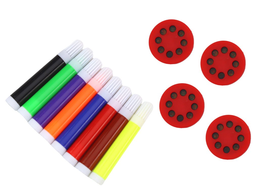 Комплектът включва до 32 налични опции за избор, което превръща всяка минута с този проектор в ново приключение в света на изкуството. Освен това, 8 цветни флумастера позволяват пълно изразяване и персонализиране на всяко творение. Спиралният бележник с листа е идеалното място за записване на идеи и създаване на собствени художествени шедьоври.