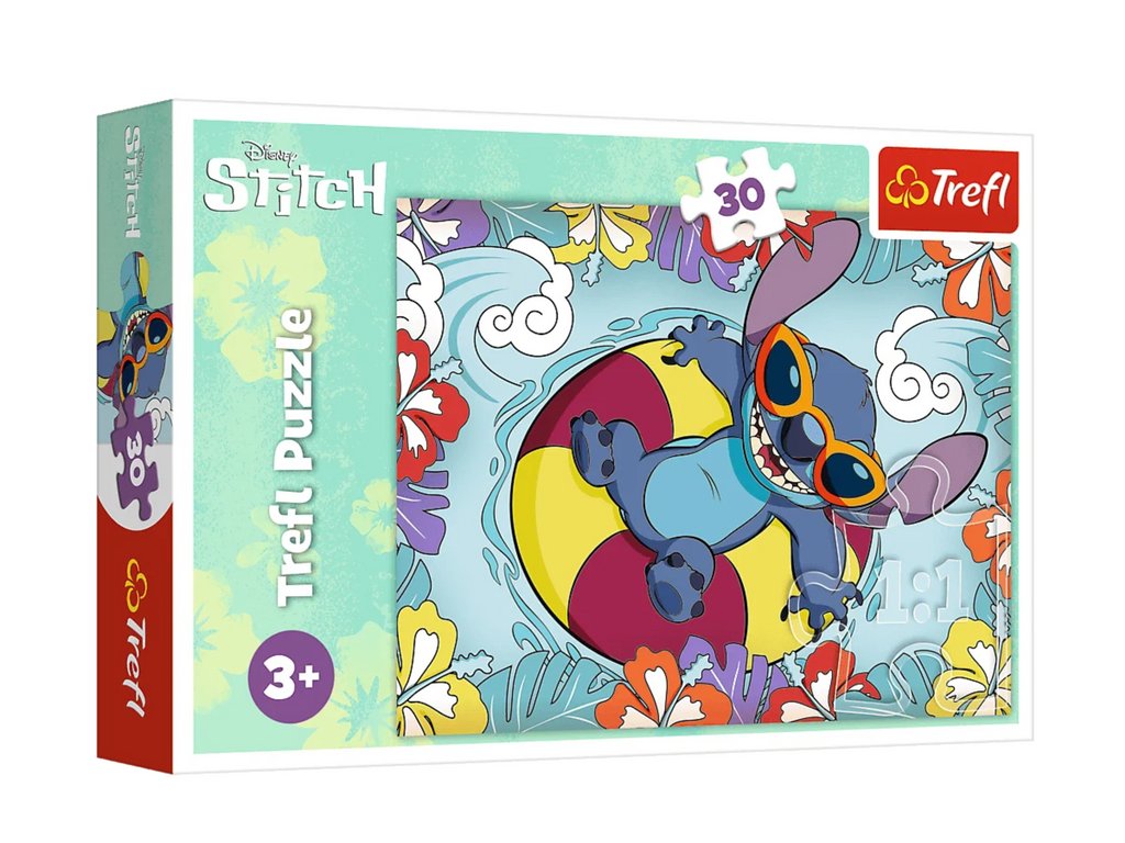 Пъзел Лило и Стич на ваканция 30 части Trefl съдържа 30 елемента и е перфектен за малките почитатели на този обичан анимационен герой. Подреждането се улеснява благодарение на използването на ламинирана хартия, която отразява светлината и улеснява боравенето с парченцата.