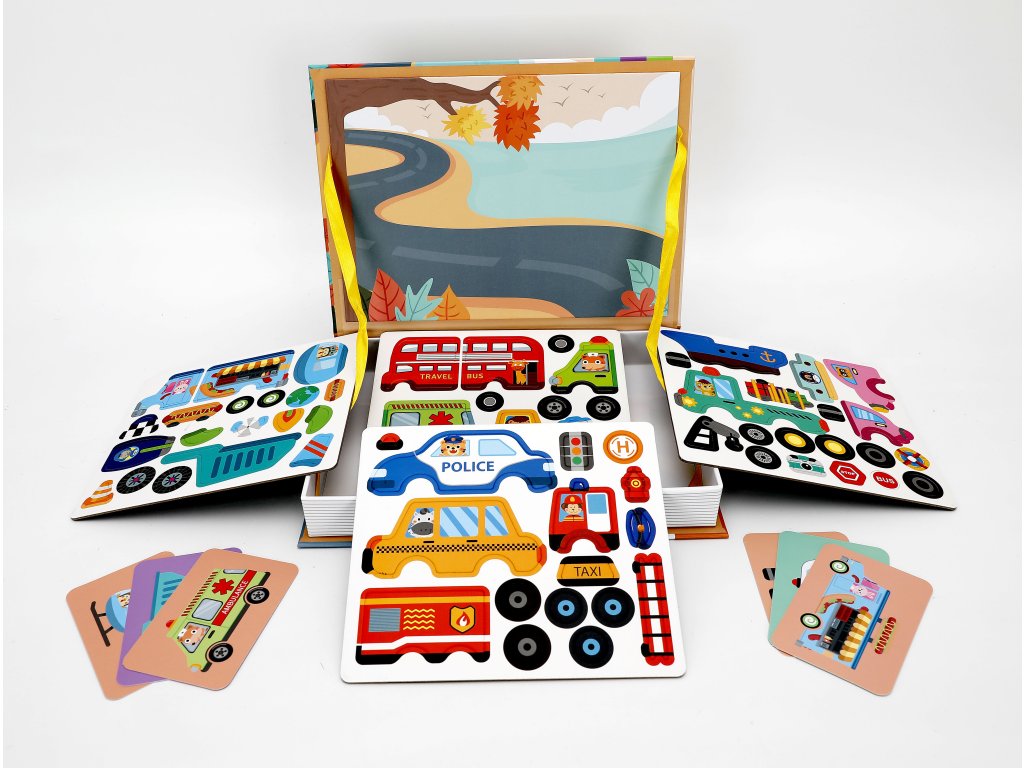 Открийте света на превозните средства с креативната магнитна книга „Превозни средства“, която подпомага въображението, логическото мислене и фината моторика на децата. Този образователен комплект е идеална играчка за деца над 3 години и съчетава учене със забавление.