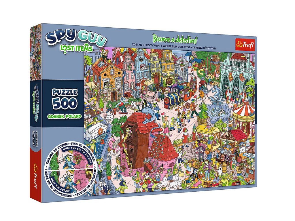 Пъзел Spy Guy Намери разликите Гданск 500 части Trefl ще те пренесе в ролята на детектив, който търси изгубени предмети на картината. Докато сглобяваш пъзела, трябва да откриеш 20 разлики между пъзела и илюстрацията на опаковката. Перфектно предизвикателство за всички фенове на мистерии и детективски игри. Подходящ за деца над 10 години.
