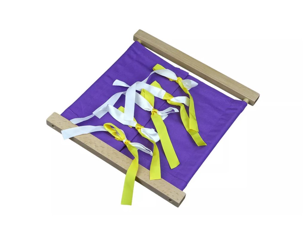 Монтесори помагало, предназначено за практикуване на връзване на панделки и подпомагане на практическите умения на детето. Дейността е насочена към развитие на фината моторика, концентрацията и независимостта.