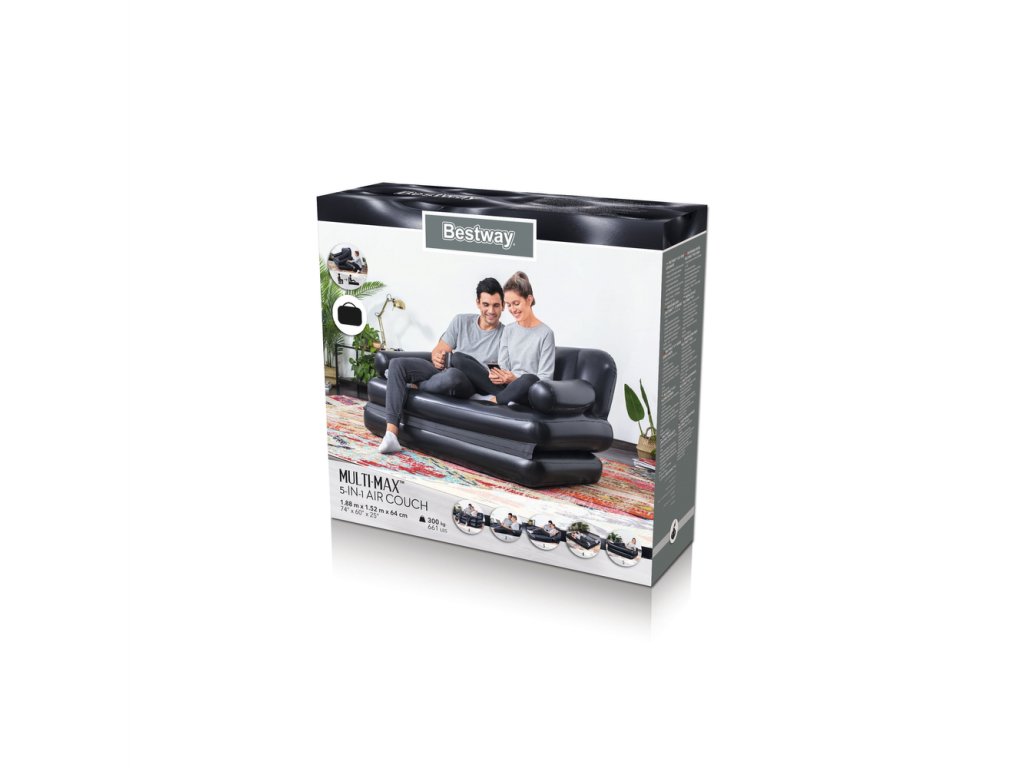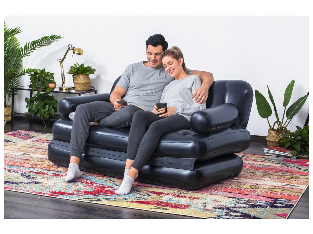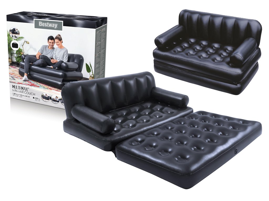 Разтегателен надуваем стол с размери 188 x 152 x 64 см. Сега можете за секунди да преобразите високия диван в двойно легло, легло с облегалка или просто много удобен матрак. Изборът е само ваш. Столът е изработен от здрав и издръжлив PVC материал. Благодарение на удобните подлакътници, гледането на любимите ви сериали или четенето на любима книга ще се превърне в истинско удоволствие. Столът разполага с регулируема позиция, която ви позволява да адаптирате мебелта според вашите актуални нужди.