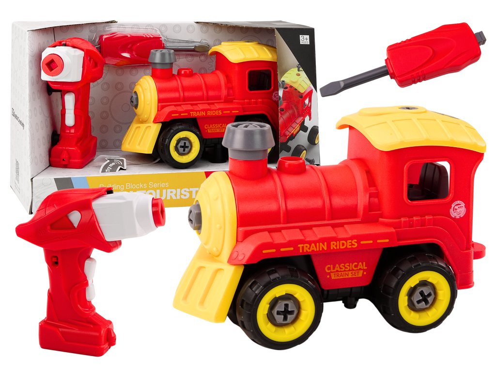 Локомотивът за разглобяване и сглобяване е динамичен комплект, който ще осигури незабравими часове забавление. Неговата червено-жълта цветова гама привлича вниманието, а дистанционното управление добавя интерактивност и удоволствие при употреба.
