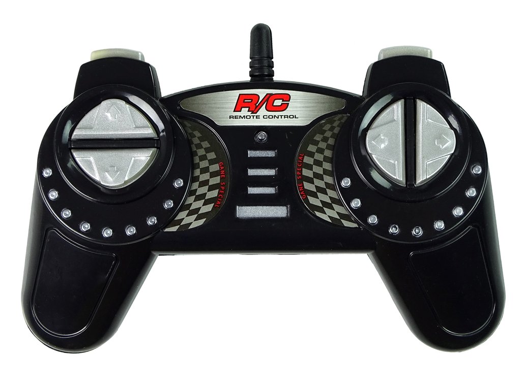 Дистанционно управление, включено в комплекта, работи на честота 2,4 GHz, което минимизира всякакви смущения по време на игра. Оборудвано е с два джойстика, отговарящи за движението напред-назад и наляво-надясно. Черният цвят придава елегантност, а светещите фарове осигуряват допълнителна реалистичност, така че ще имате усещането, че управлявате истинска кола.