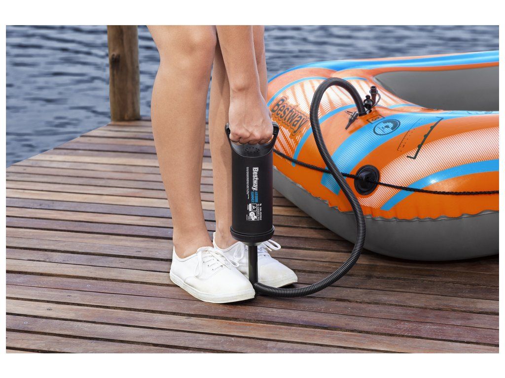 Ако искате бързо да надуете матрак, пояс или плажен топка, със сигурност ще ви бъде полезна ръчна помпа Bestway 30 см. Благодарение на сменяемите накрайници, тя е идеална за всички видове надуваеми продукти. Помпата изпомпва въздух както при движение нагоре, така и надолу, което ефективно намалява времето за надуване. Поради своите компактни размери е идеална за пътуване до басейна или плажа.