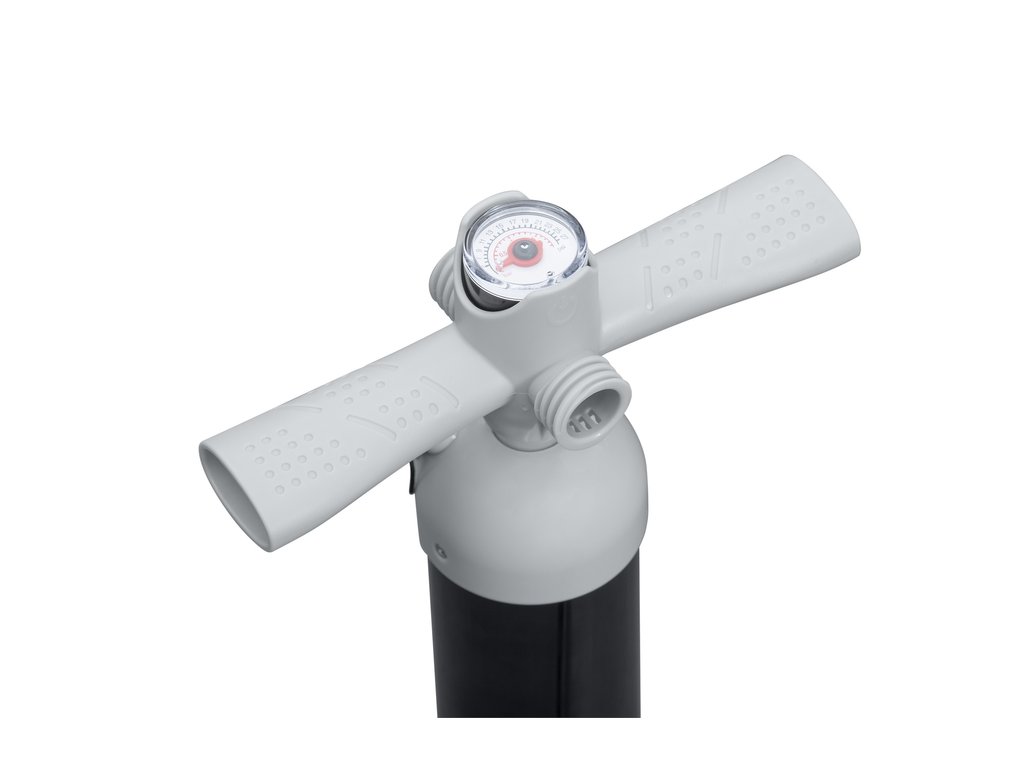 Ръчната високонапорна помпа с манометър Bestway 62227 ви позволява лесно и бързо да надуете надуваеми матраци, легла, плувни кръгове, лодки, SUP бордове, топки и други. Помпата разполага с алуминиев бутало и ергономични дръжки с противоплъзгащо покритие. Манометърът има ясен и лесен за четене дисплей. В комплекта са включени 5 различни адаптера.